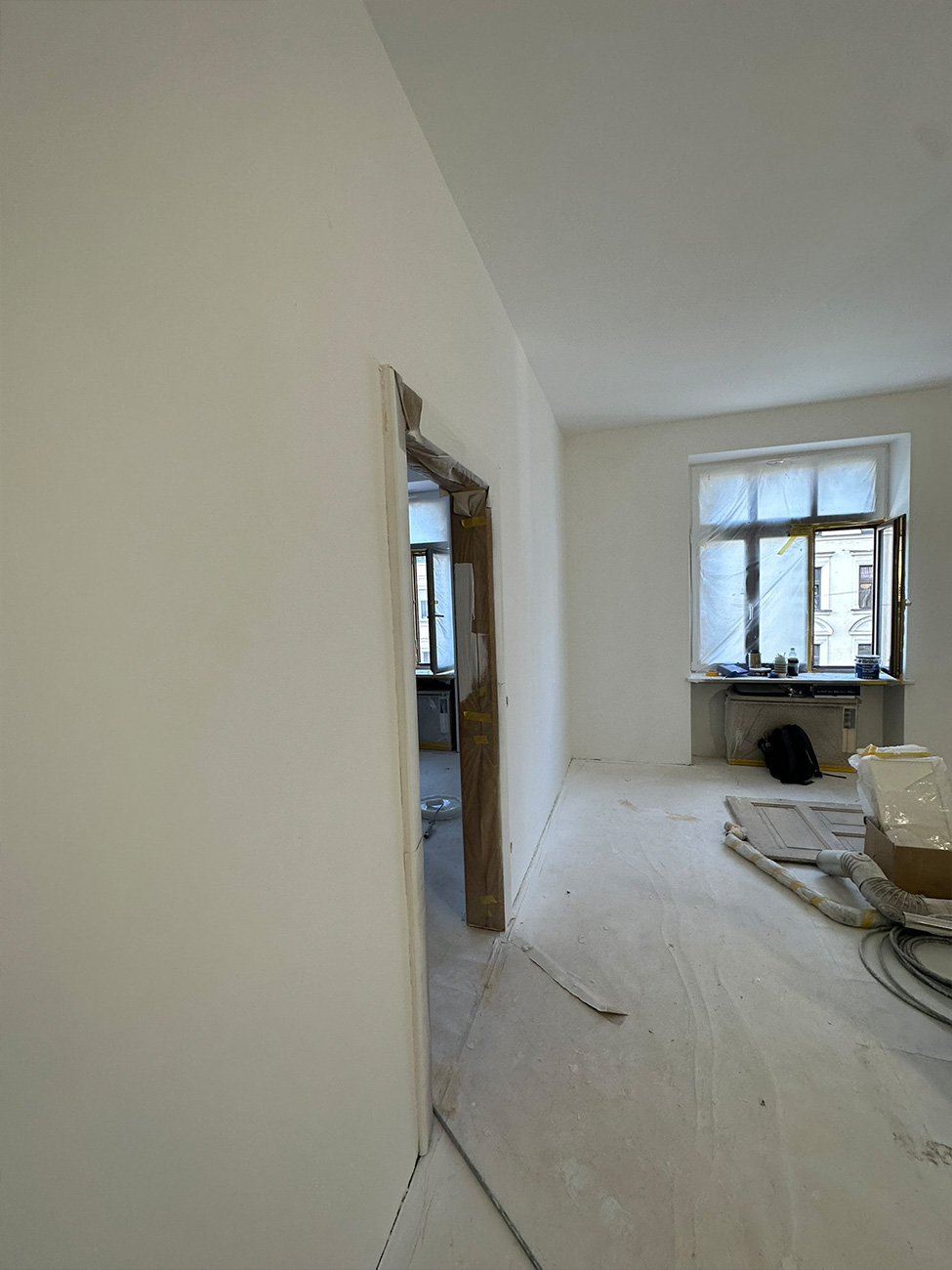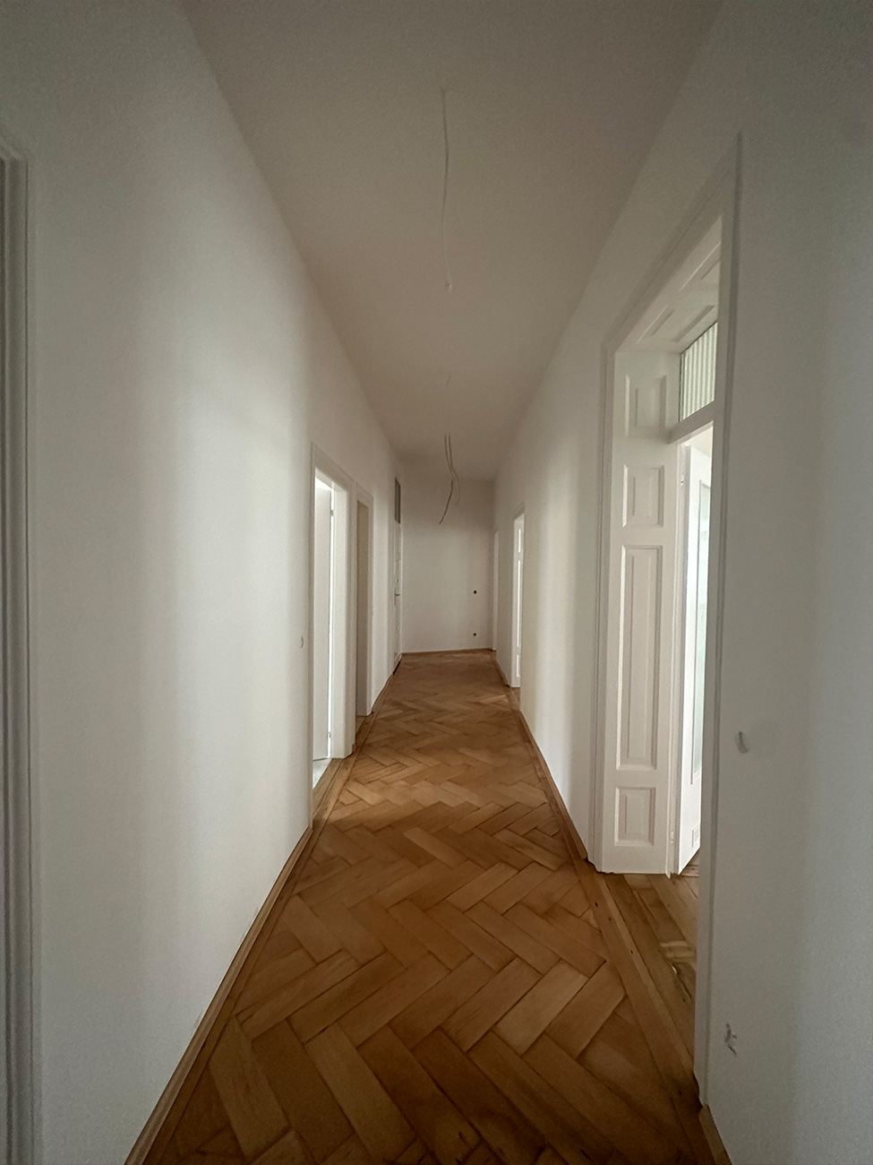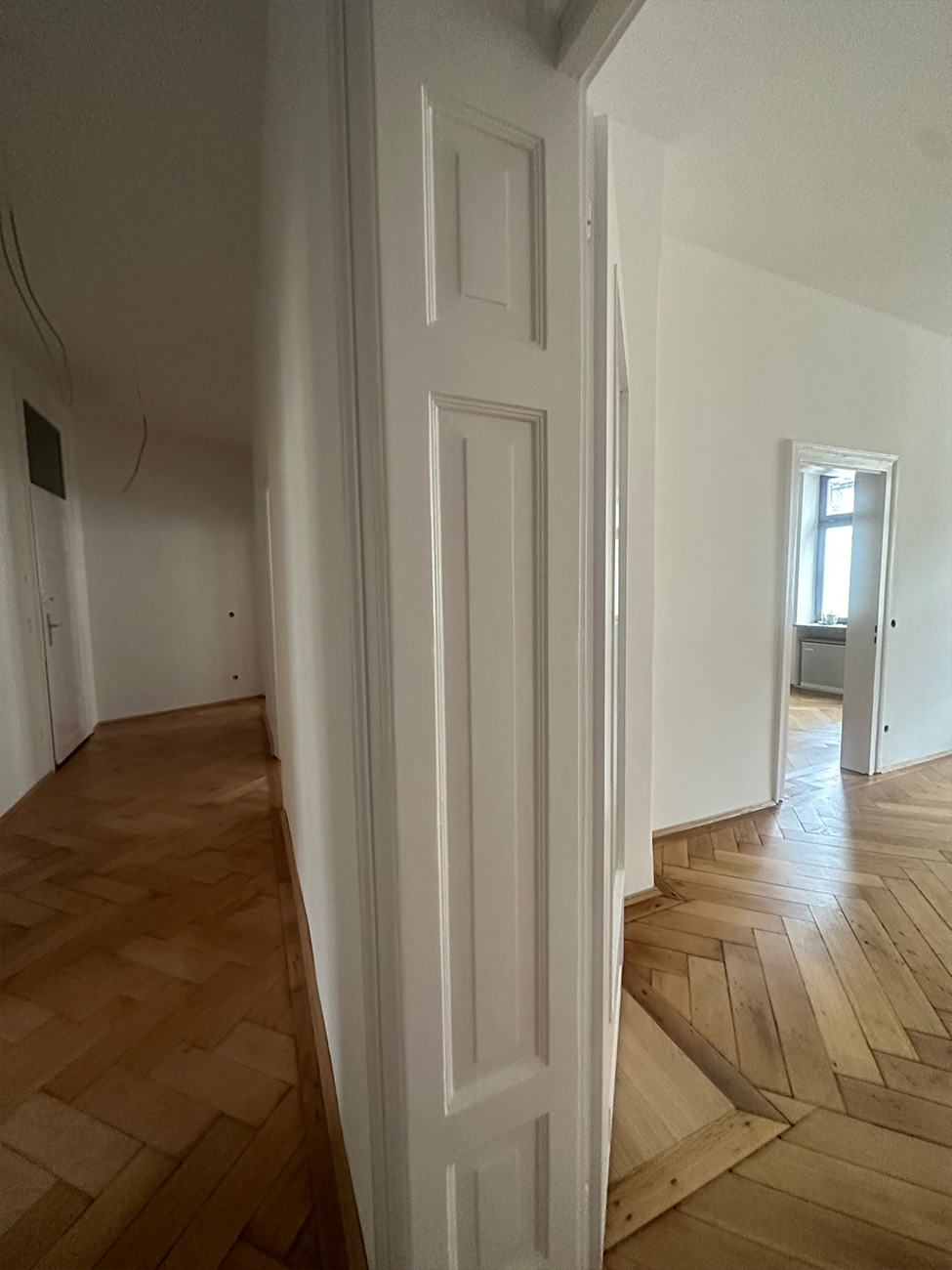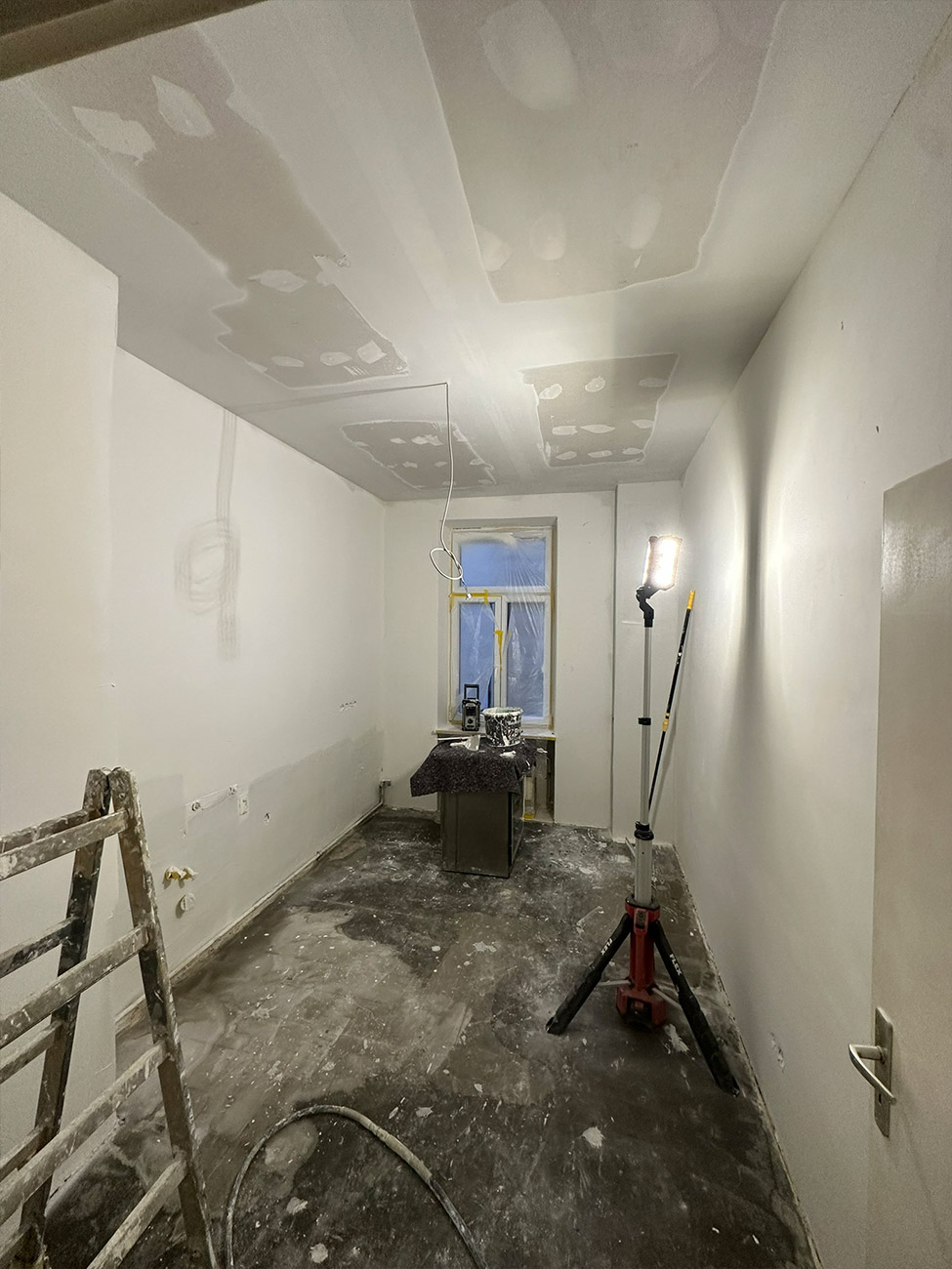 In der Volkartstraße, im begehrten Stadtteil Neuhausen-Nymphenburg, führten wir im Auftrag der Genossenschaft die umfassende Sanierung eines Altbaus aus dem Jahr 1920 durch. Im Rahmen der Komplettsanierung übernahmen wir sämtliche Trockenbau- und Malerarbeiten. Die Wände wurden mit hochwertigem Malervlies verspachtelt, um Rissbildungen nachhaltig zu verhindern und eine stabile, langlebige Oberfläche zu gewährleisten.