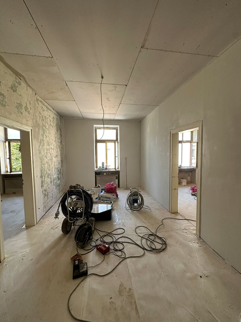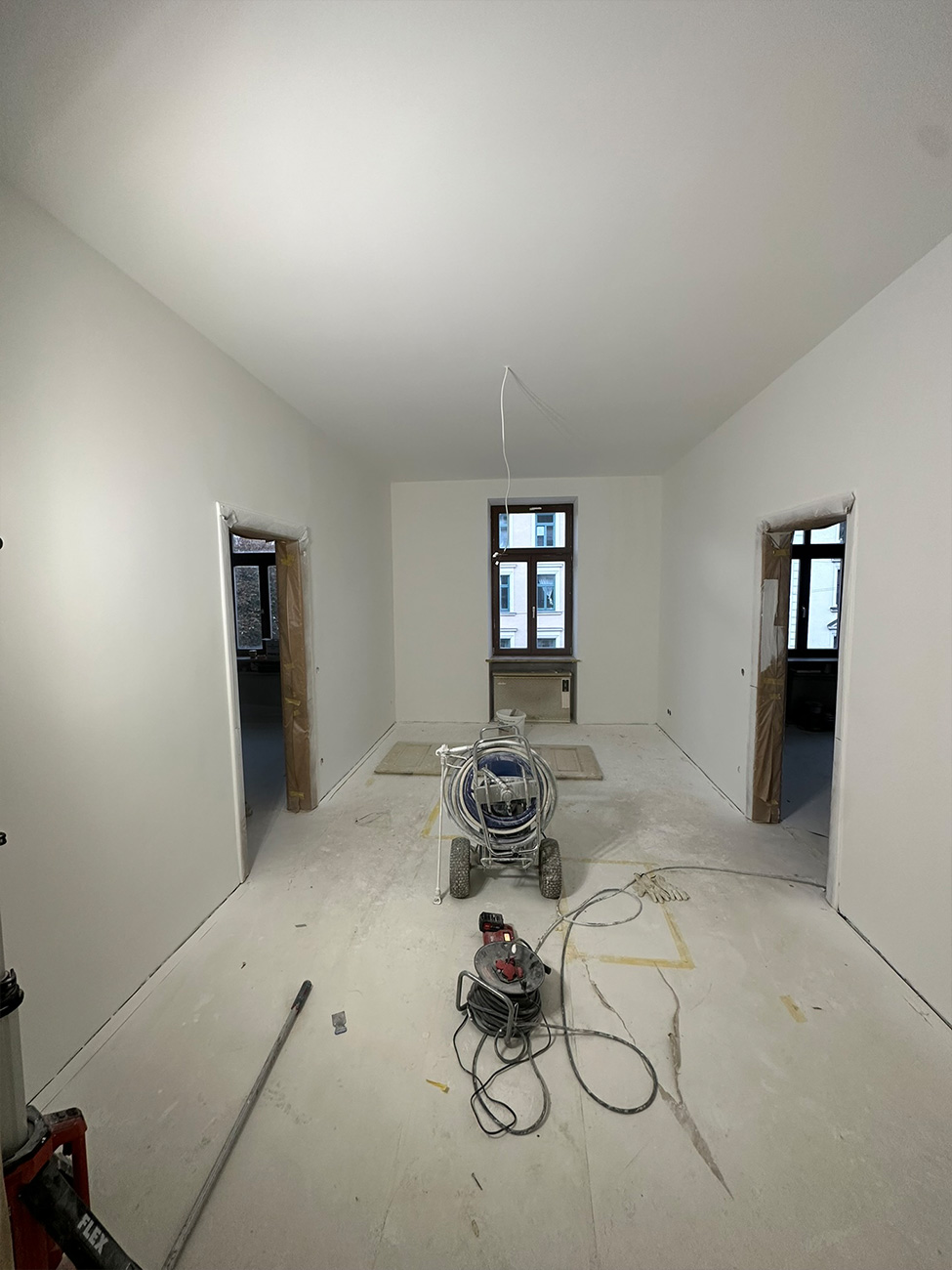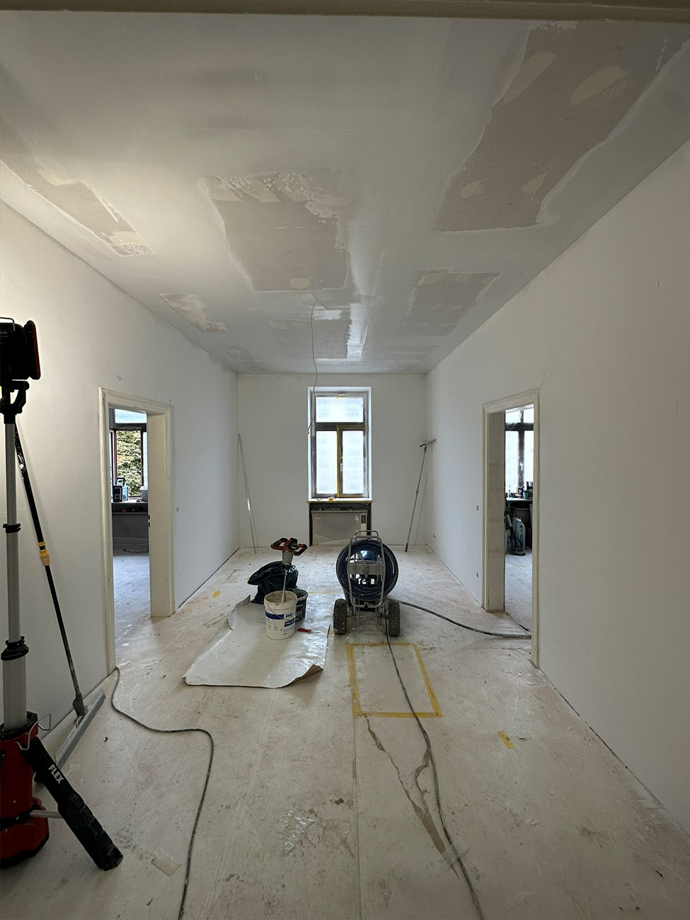 In der Volkartstraße, im begehrten Stadtteil Neuhausen-Nymphenburg, führten wir im Auftrag der Genossenschaft die umfassende Sanierung eines Altbaus aus dem Jahr 1920 durch. Im Rahmen der Komplettsanierung übernahmen wir sämtliche Trockenbau- und Malerarbeiten. Die Wände wurden mit hochwertigem Malervlies verspachtelt, um Rissbildungen nachhaltig zu verhindern und eine stabile, langlebige Oberfläche zu gewährleisten.