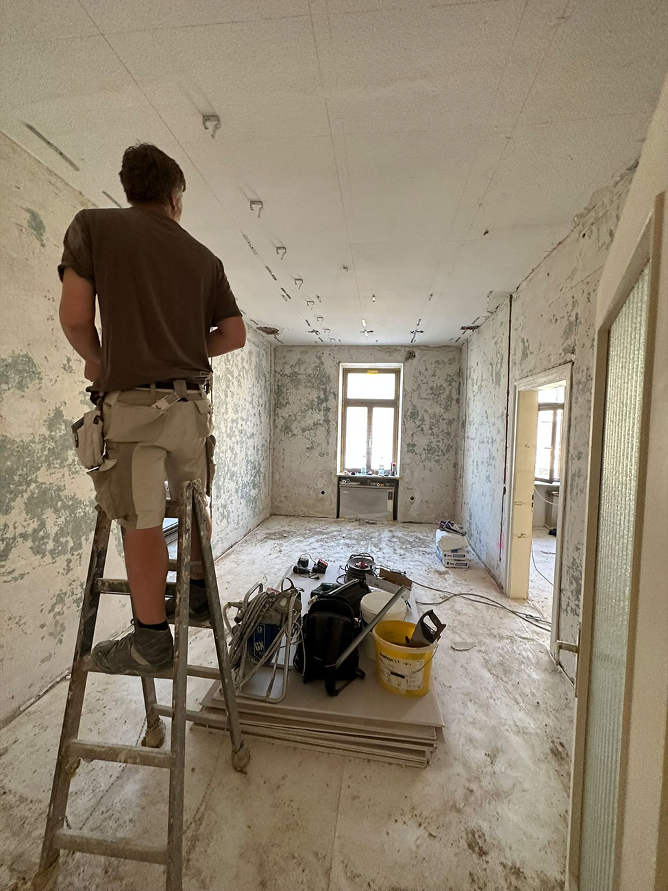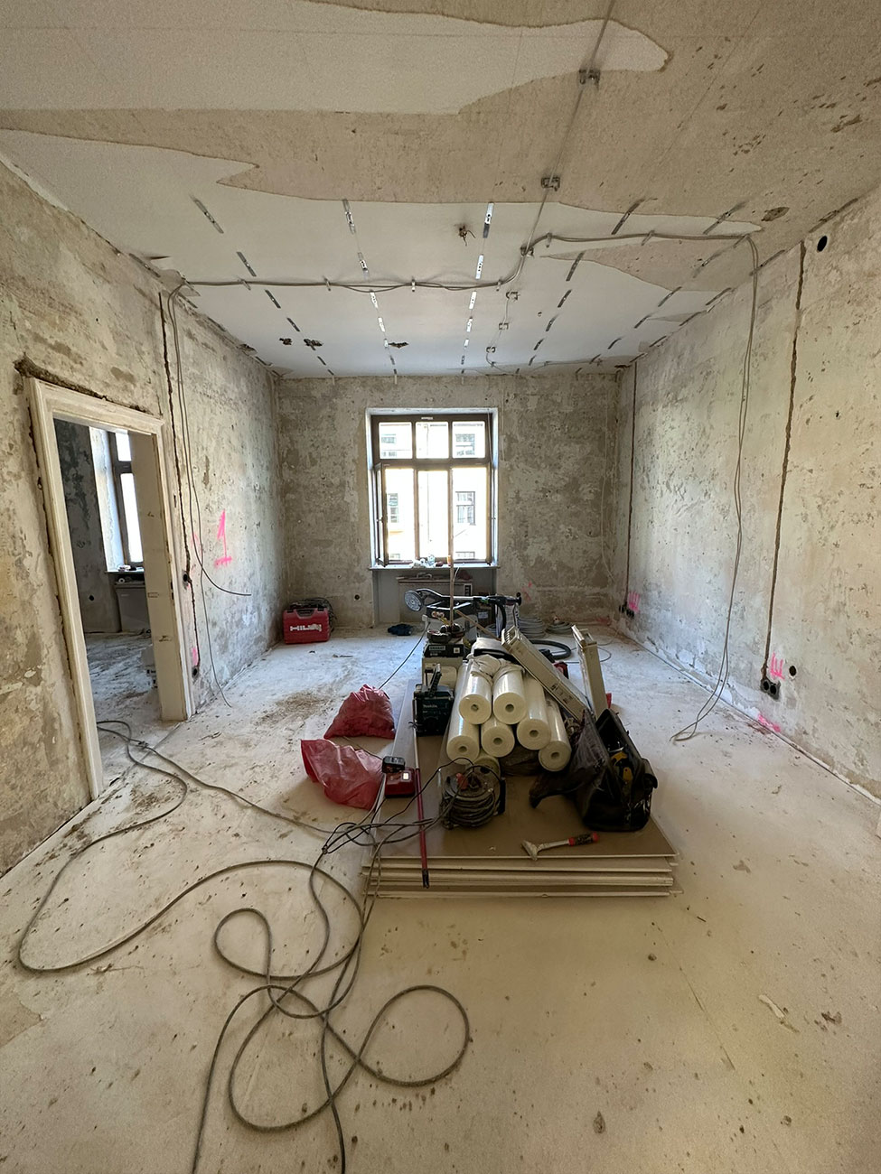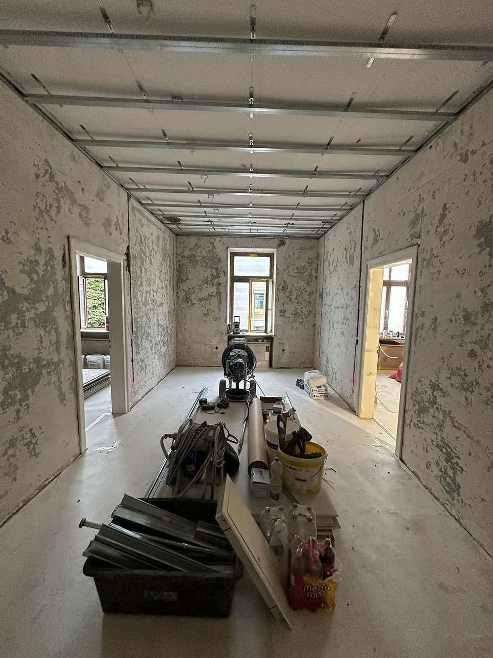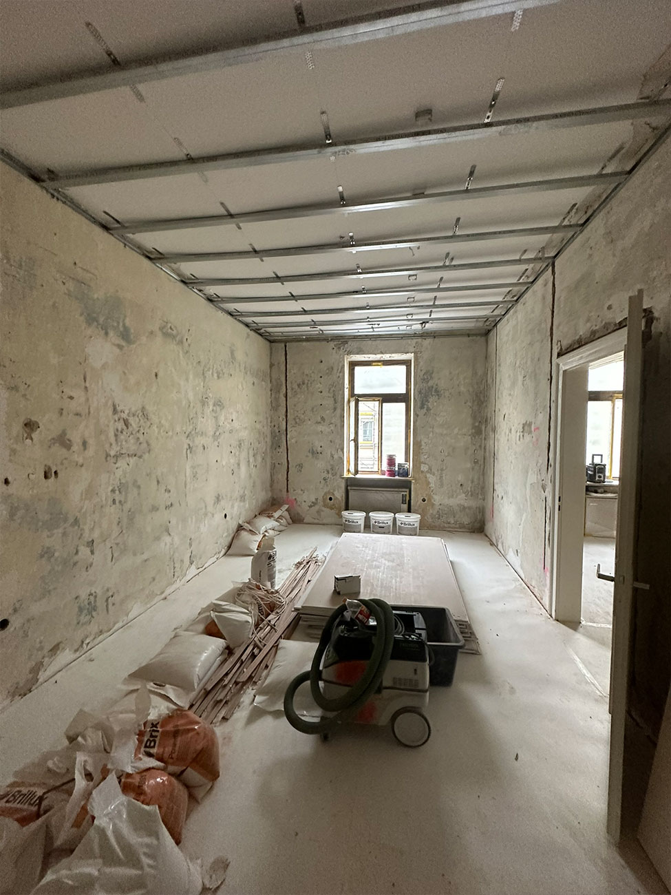 In der Volkartstraße, im begehrten Stadtteil Neuhausen-Nymphenburg, führten wir im Auftrag der Genossenschaft die umfassende Sanierung eines Altbaus aus dem Jahr 1920 durch. Im Rahmen der Komplettsanierung übernahmen wir sämtliche Trockenbau- und Malerarbeiten. Die Wände wurden mit hochwertigem Malervlies verspachtelt, um Rissbildungen nachhaltig zu verhindern und eine stabile, langlebige Oberfläche zu gewährleisten.